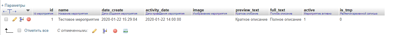 Разработку модуля будем проводить на примере модуля Мероприятия.