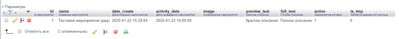 Разработку модуля будем проводить на примере модуля Мероприятия.